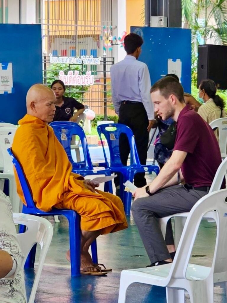 I had a friend call out, “Brandon, we need a foreigner to come and talk to this Monk.” They knew that I wouldn’t feel as much tension and a need to use special words when talking to him. He wasn’t very talkative, so I just went straight to the question about a Creator. After talking some, he admitted, “There probably is a Creator.” I shared with him the gospel of Jesus Christ and prayed for him.