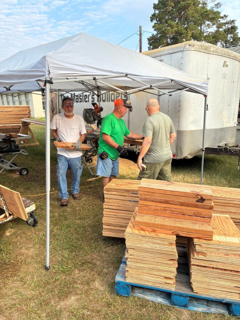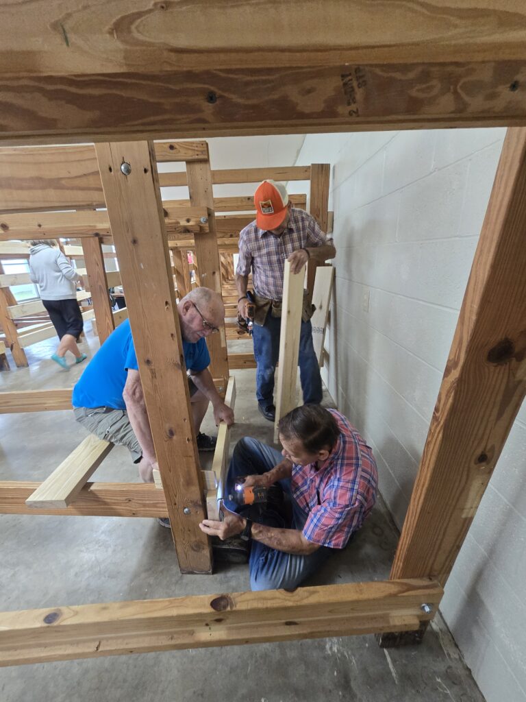 On Sept. 8, the Master’s Builders began work at Daniel Springs Camp in Gary, Texas. Camp Director Jason Prewitt asked the Builders to come and do modifications on 200 bunk beds in one of the camp’s largest cabins. They needed to change each bunk bed from 28” bunks to a more standard 36” bunk. All the bunk beds had to be disassembled, widened, and then reassembled. The men accomplished all this in eight working days! They also repurposed a lot of the removed wood to add storage areas between the bunks, allowing each bunk to access them.