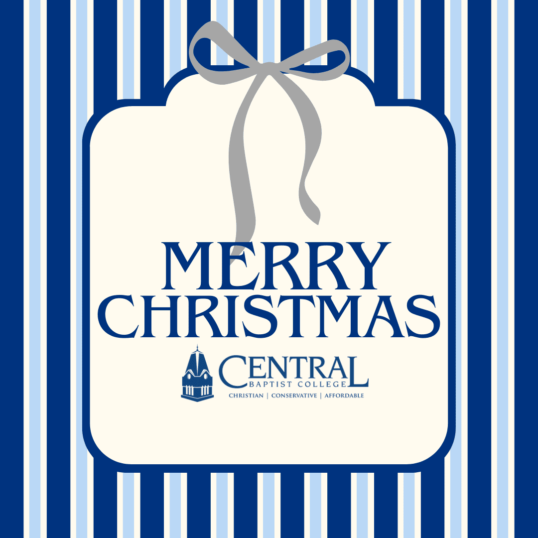 The Central Baptist College campus will be closed Monday, Dec. 22, through Friday, Dec. 26, for the Christmas holiday. We will be closed on Thursday, Jan. 1, and Friday, Jan. 2, for the New Year’s holiday. We will operate under regular business hours on Dec. 29-31.
