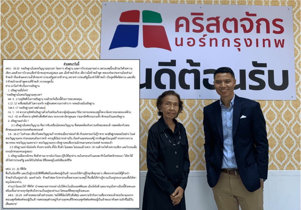 • New Member — Her name is “Yai,” and she’s been attending our church faithfully since April. After she visited our church for a few months, she expressed her desire to become a member, so we went through the membership process with her. Two Sundays ago, she officially became the newest addition to our church family. Mrs. Yai is in her early 70s, and we are happy to welcome her. She loves studying the Word of God, which is one of the many reasons she gave us at our last member meeting for wanting to join our church. Please pray for her new journey with us.